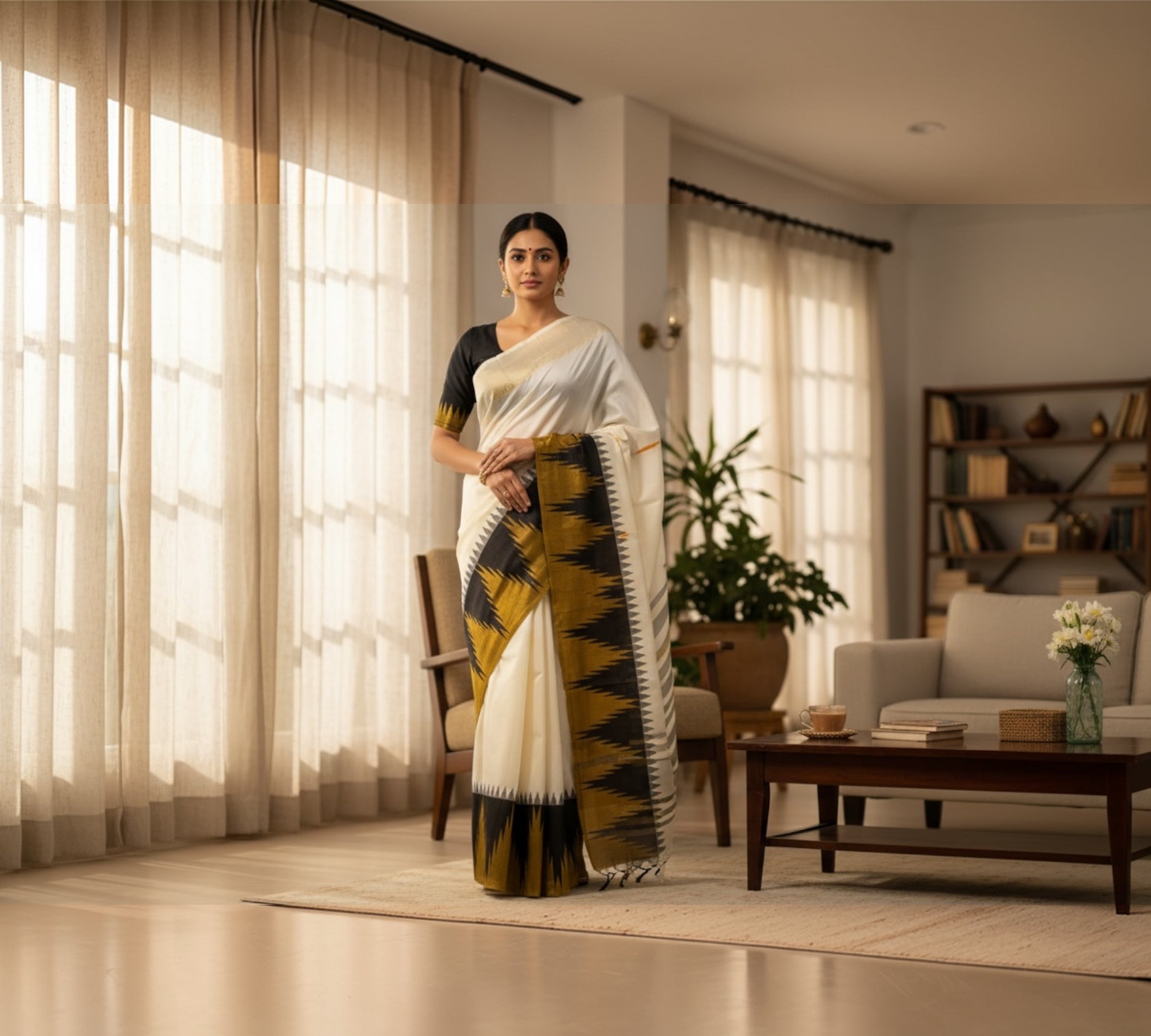 Handwoven Ikkat inspired Silk Saree