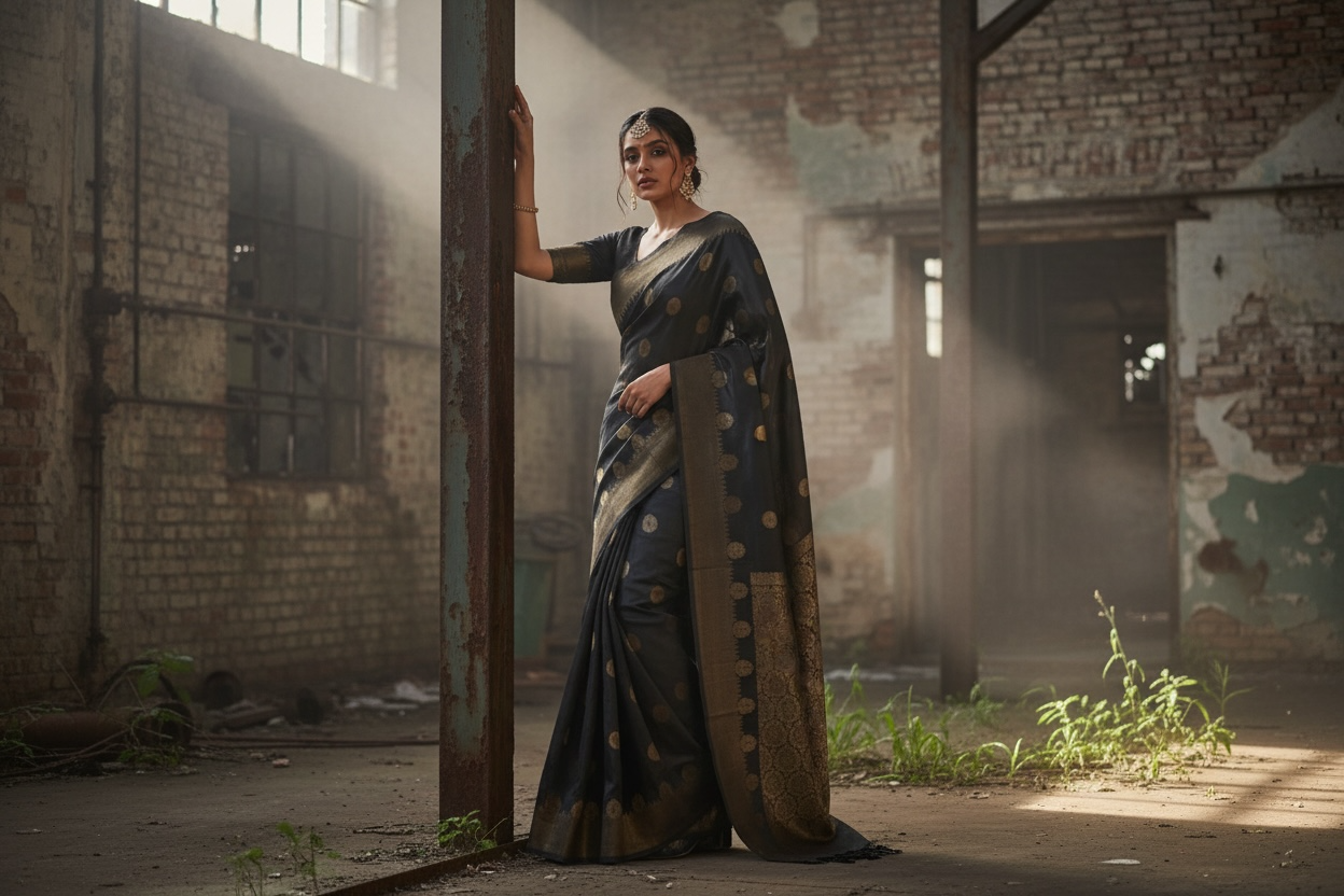 Banarasi Handwoven Organza Silk Saree in black