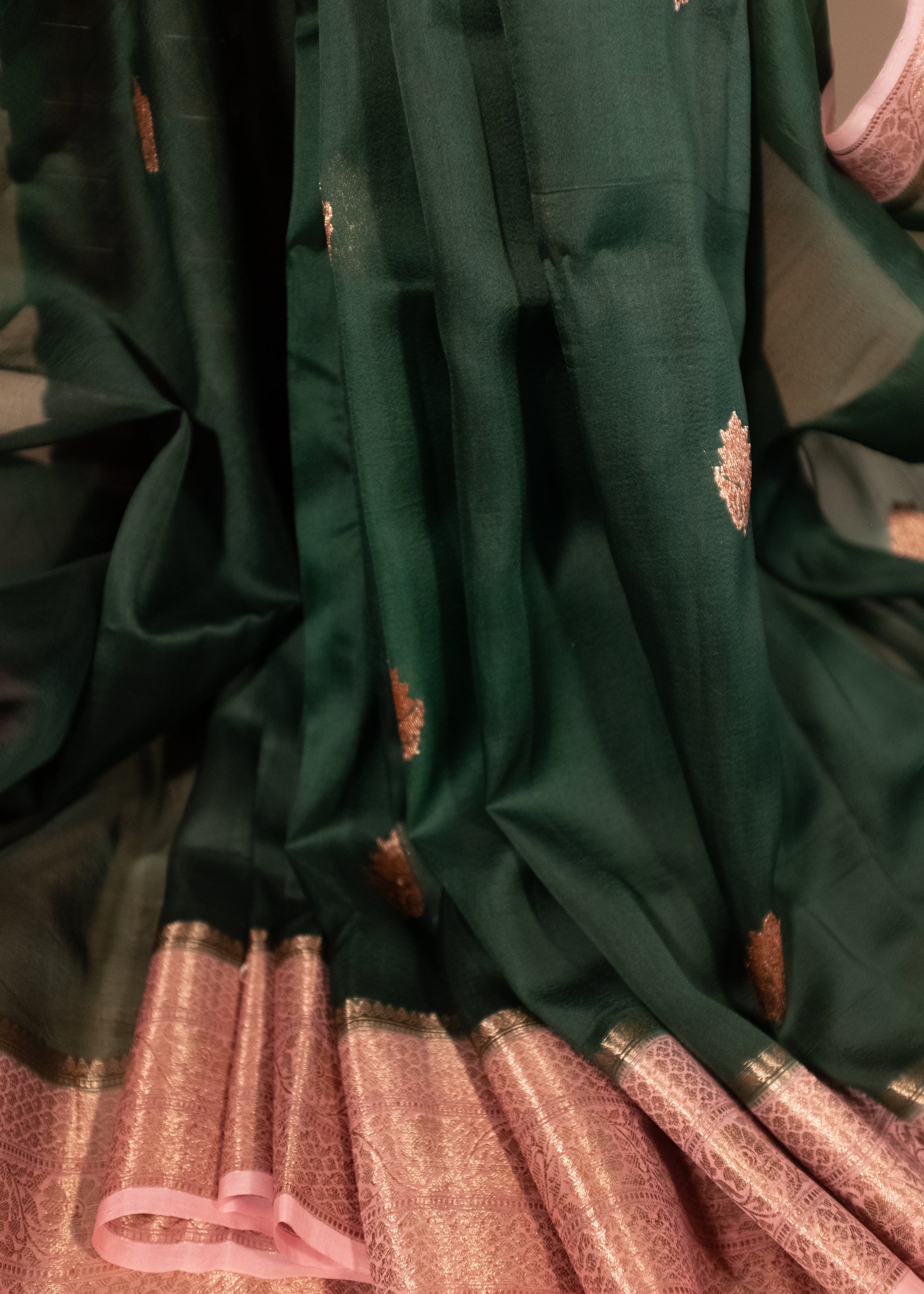 A finely crafted Handloom Banarasi Organza Silk Saree, woven with delicate precision and timeless artistry. Lightweight with a subtle sheen, this saree features intricate Banarasi motifs that reflect heritage craftsmanship. Elegant and breathable, it is perfect for festive occasions, formal gatherings, and refined everyday wear. A graceful blend of tradition and modern sophistication.