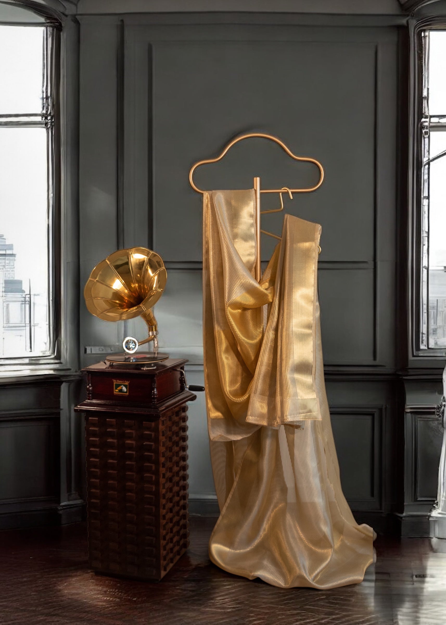 Off White with Gold Banarasi Tissue Soft Silk Saree